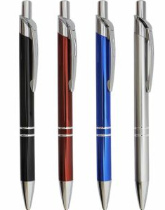 0 out of 5Caneta Metal: Inteiramente colorida com detalhes prata. Clip metal com a ponta do acionador preto, parte inferior com dois anéis prata. Aciona por clique.
